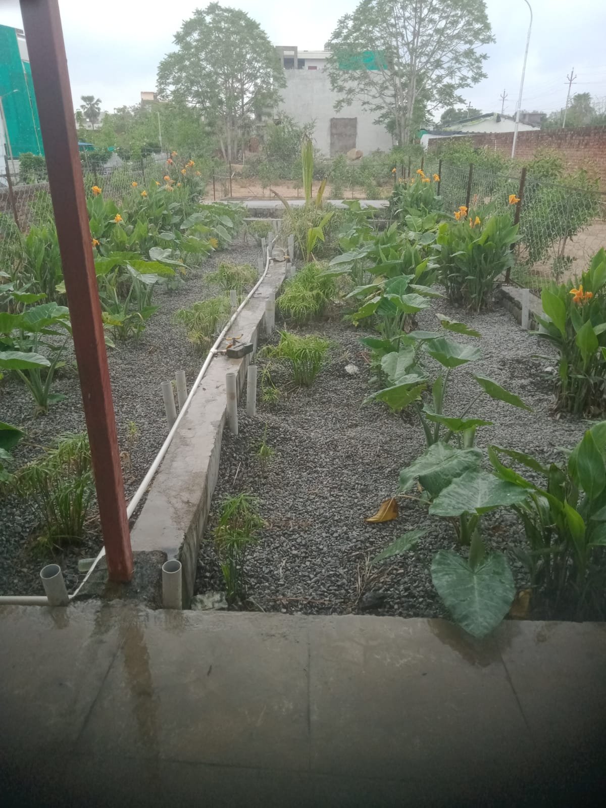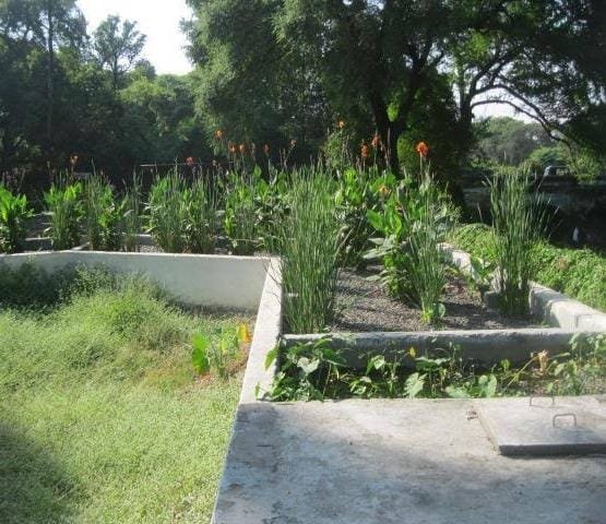 - The treated water is used for gardening.
